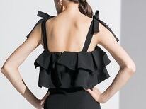 ブラック ロング丈 フリル パーティードレス ipd0159