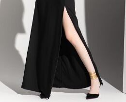 ブラック ロング丈 フリル パーティードレス ipd0160
