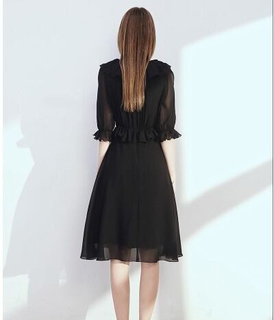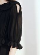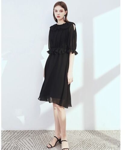 ブラック ひざ丈 パフスリーブ パーティードレス ipd0211