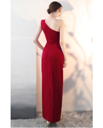 ワインレッド ロング丈 スリット パーティードレス ipd0215