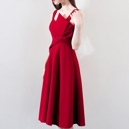 ワインレッド ひざ下丈 リボン パーティードレス ipd0226
