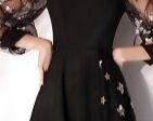 ブラック ひざ丈 シースルー袖 パーティードレス ipd0240