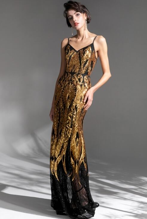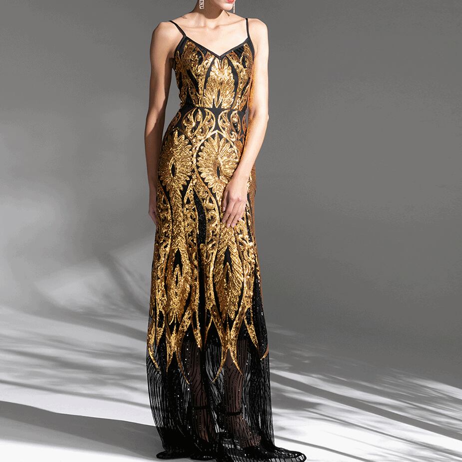 ゴールド キャミソール ロング パーティードレス iod0544
